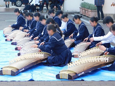 10月26日(日)、橋本市恋野地区で開催されたイベント「恋野地区収穫祭」で本校邦楽部の演奏の機会をいただきました。古典曲である「六段の調べ」、童謡「もみじ」「まっかな秋」「虫のこえ」の4曲を披露しました。イベントに集まった幅広い年齢層の方に、我々の演奏を楽しんでいただくことができました。