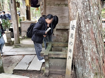 11月19日(水)1学年が高野山での実地研修に行きました。奥の院ガイドによる説明や精進料理体験に加えて、高野山の町中を探究グループで散策し、地元の方や観光客の方にインタビューを行いました。中には、アンケートボードを作成し、観光客にアンケートを取るグループも。これまで知っていた「高野山」とは違う、自分だけの「高野山」を見つけるために、生徒それぞれが個性あふれる視点で写真を撮影している姿が印象的でした。