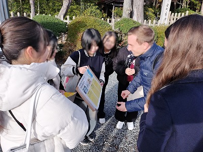 令和7年9月16日、1年生の学校設定科目「世紀の空」において、大阪観光大学留学生との交流授業を実施しました。 1年生の各グループが、自分たちが考えた観光プランを留学生に向けて発表しました。「観光を学ぶ大学生」であり、また「外国人観光客」でもある留学生からのアドバイスに、自分たちの観光プランをさらに深めるよい機会となりました。