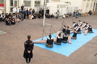 | 学校開放週間の行事として、中庭で行われる文化部による発表会が、11月4日〜7日実施されました。 多くの学生や見学の方々の前で、演劇部、邦楽部、コーラス部、ギター部、吹奏楽部、バトン部が日頃の 成果を発表しました。 |