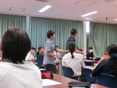 和歌山県庁から2人の講師先生をお招きし、3年生を対象にキャリア学習会を行いました。講師先生はそれぞれ経 済産業省、総務省に入省された官僚の方々で、現在和歌山県で勤務されています。前半はそれぞれの講師先生から 今取り組まれている仕事内容についてお話していただきました。後半はSNSを利用して「橋本市」をPRするた めにどういう戦略をたてるかグループで考えて発表しました。社会の第一線で活躍されている方々と交流すること で、生徒たちは自分の将来を考える貴重な時間を過ごしました。